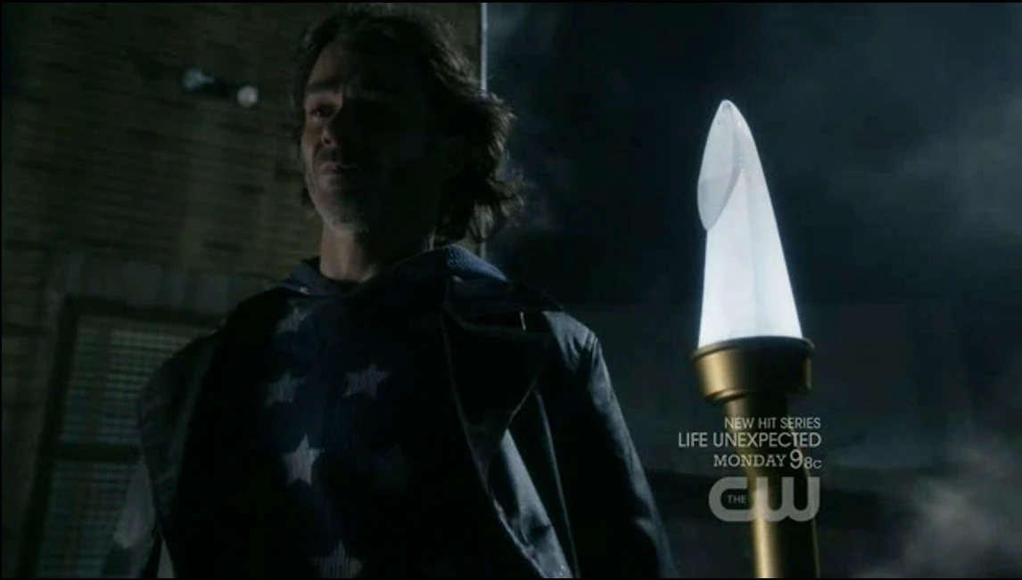 As Oliver is informing Chloe via cellphone that the staff is missing, he sees Courtney walking down the street with it. He approaches her and she points the staff at him but hesitates when he tells her that two men are dead. Nelson appears and activates the staff, making himself and the girl disappear.