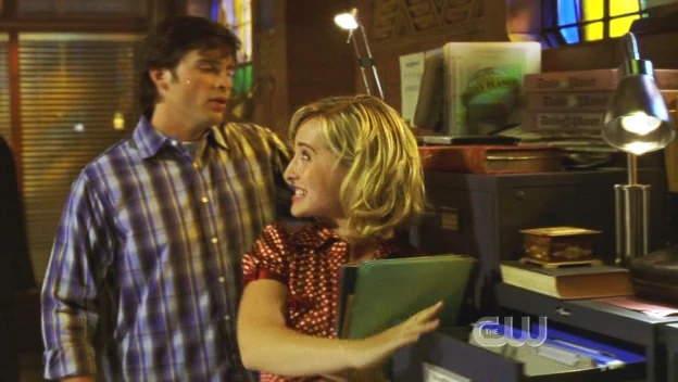 - Chloe comments that Lois' "bumbling through the database is like watching Clark try to dance"—a sight viewers were treated to in "Tempest" and "Spell".