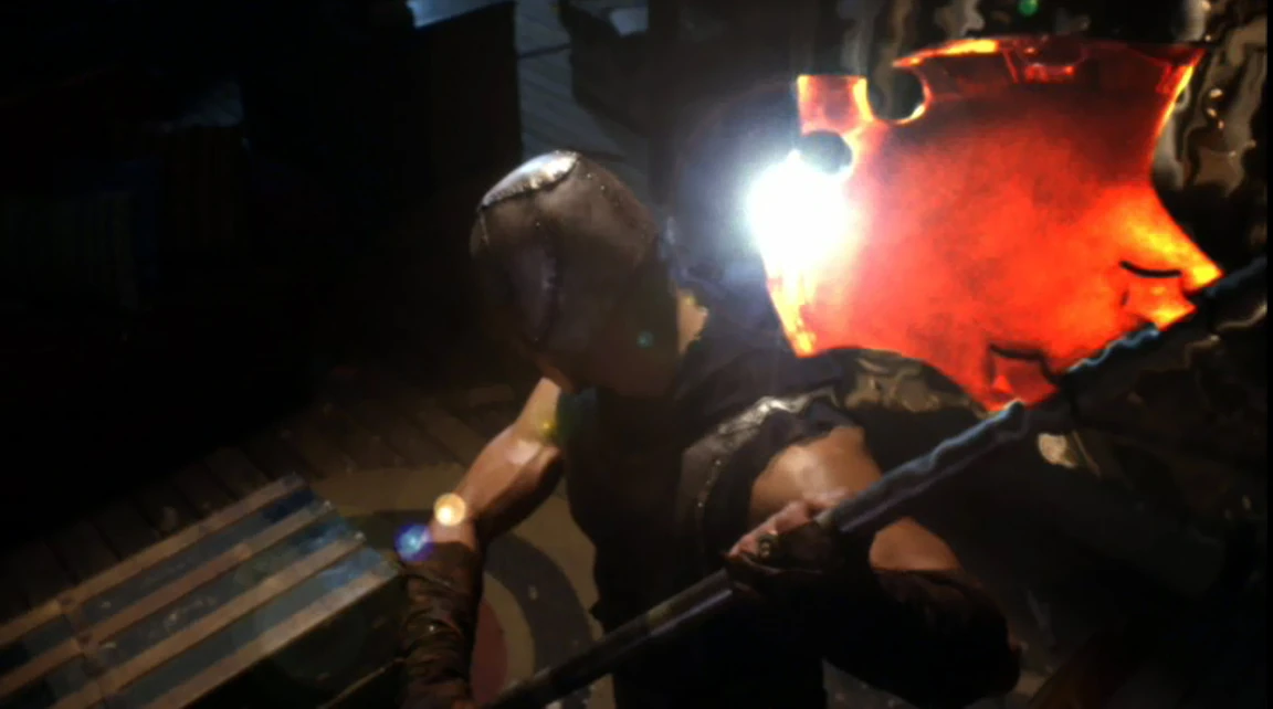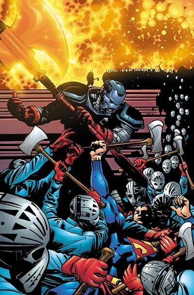 The Persuader teleported into the Kent barn with a time portal and destroyed Martian Manhunter's red crystal and cut a hole into Clark's abdomen. It's unknown how the axe was created and how Persuader came into possession of it.