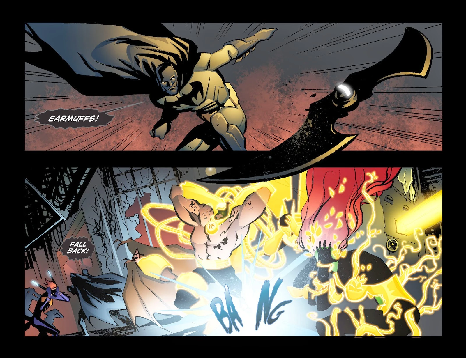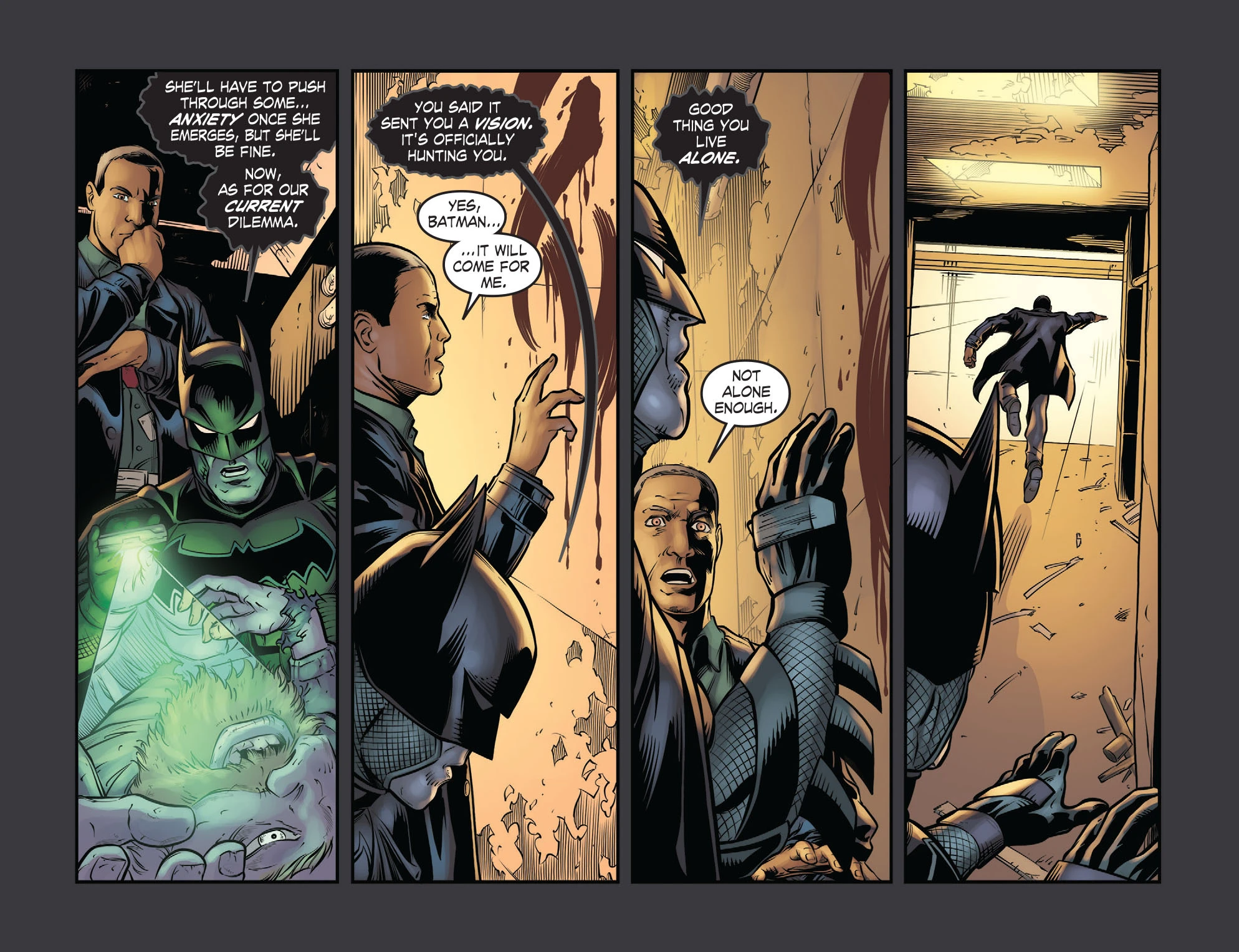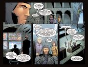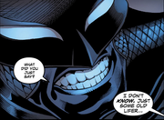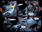 recites various passages of scripture from as Batman continues to pummel him with his fist harder. Batman reveals to Mannheim his awareness and knowledge that he knows he's not only the boss of Intergang, he is the main facilitator of Intergang and therefore he knows exactly where Chill is. Nightwing contacts Batman via his cowl-com device to suggest he might want to dial down his method of interrogation as Superman is behind him.
