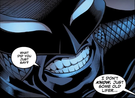Nightfall at Stryker's Island, Batman confronts and interrogates Bruno Mannheim on the whereabouts of Joe Chill. Mannheim is unfortunately not as cooperative as Batman would've like him to be. Forcing Batman to take stronger methods of terrifying intimidation to convince him to talk. Mannheim pleads that he's changed as a result of Gordon Godfrey who gave him the Crime Bible which he