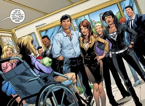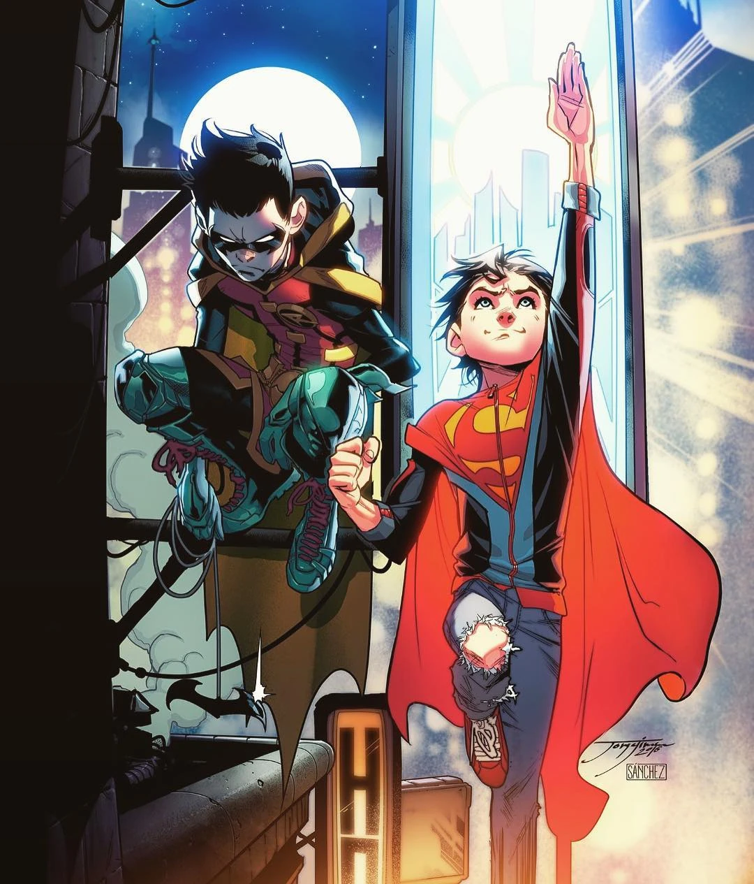 Upon the relaunch of Dc's Rebirth, Bruce is now more of a close knitted family relationship with Clark, and Diana as both of them take great interest in watching over Lois and Jonathan. Clark even appointed Bruce and Diana as the Godparents over his son Jonathan. Bruce's son Damian has befriended Jonathan and often times have teamed up together as the duo Superboy and Robin : The Supersons.
