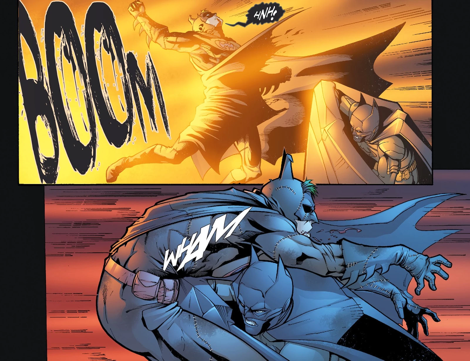 Floating above Superman attempt to resolve the matter peacefully by requesting a word with Batman. Batman acknowledges and response by activating a device upon his gauntlet gloves producing a red electrically charged energy. He then process to lunge towards Superman and hit him directly in the face causing him to bleed. A fierce battle ensure between The Man Of Steel and The Dark Knight.