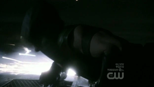 Back at the party, Tess and Ollie get into a fight over their secret identities, which includes a lot of knife throwing by her.