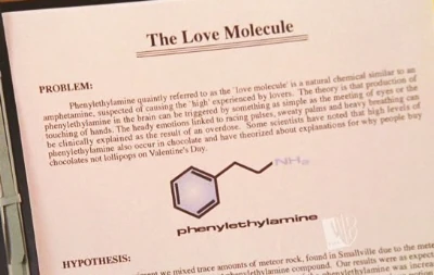 The Love Molecule is a hormone called phenylethylamine. When combined with kryptonite, it acts as a love potion. When ingested, a person becomes completely devoted to the person they are interested in and becomes extremely suspicious of anyone who dares to look at the object of their affection. The Cheerleaders of Devotion used this to make their football player boyfriends completely devoted to them. However, the football players also became insanely jealous, and were even driven to homicidal tendencies. Jason Teague, Chloe Sullivan, and football quarterback Dan Cormay all drank the sports drink and their personalities were changed. The only way to cure them was expose them to extreme heat.