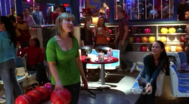 Lana's "bachelorette party" at the bowling alley with her best friend.