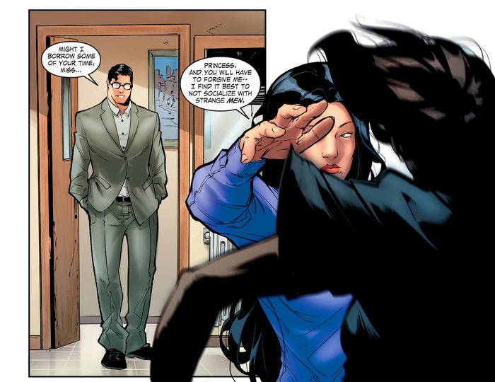 Diana was in a romantic relationship with fellow Leaguer, Superman, with their union is the new status quo. They shared their first kiss in Justice League #12. Because of the relationship, Wonder Woman appears, besides the Wonder Woman and the Justice League comic book series, in the new Superman/Wonder Woman series.
