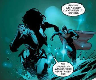 Superman and Wonder Woman begin to fight against Hades' harpies and during the fight, Diana explains to Clark that the only way to defeat Hades is to send him back to Tartarus, a hellish dimension where he was imprisoned by Hippolyta years ago (and the place in Greek mythology where sinners are punished after death), in order to keep the Olympian realms in balance. She also says that her mother in order to imprison Hades in the first place she had to kill the witch, who served him, meaning that now they have to kill Faust. Superman says that is not going to happen and there is always another way, taking Hades and flying him into outer space.