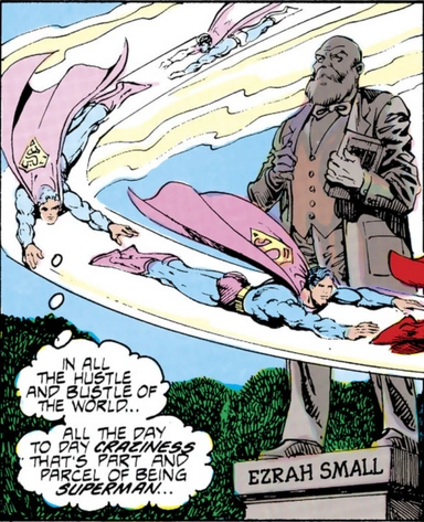 In the comics, his name is given as "Ezrah Small". A statue of him can be seen in World of Smallville #1 (April, 1988).