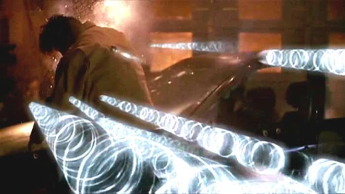 Clark dodges the first couple of dozen bullets, but there are too many, they start hitting him in the back, tearing holes in his jacket, and Clark collapses. When Lex approaches to finish him off, Clark kicks him across the room, effectively snapping him out of his trance.