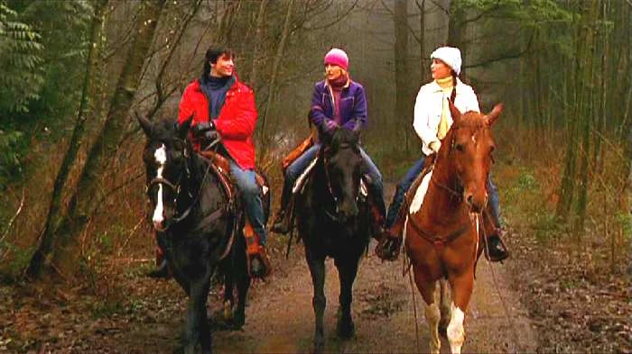 Clark, Chloe and Lana are horseback riding.