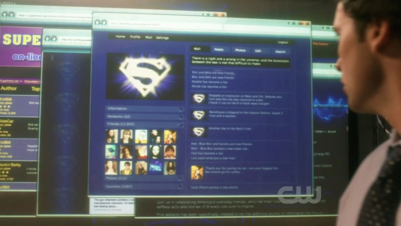 - Chloe tells Clark that someone created popular Facebook and Twitter accounts for the Blur, and comments that he has come a long way since being "scarecrowed in high school", a reference to the first episode Pilot.
