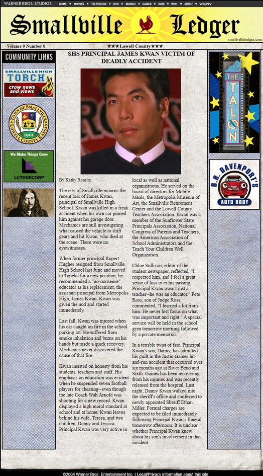 Principal James Kwan was Smallville High School's principal from June 2001- Spring 2002 until his death.