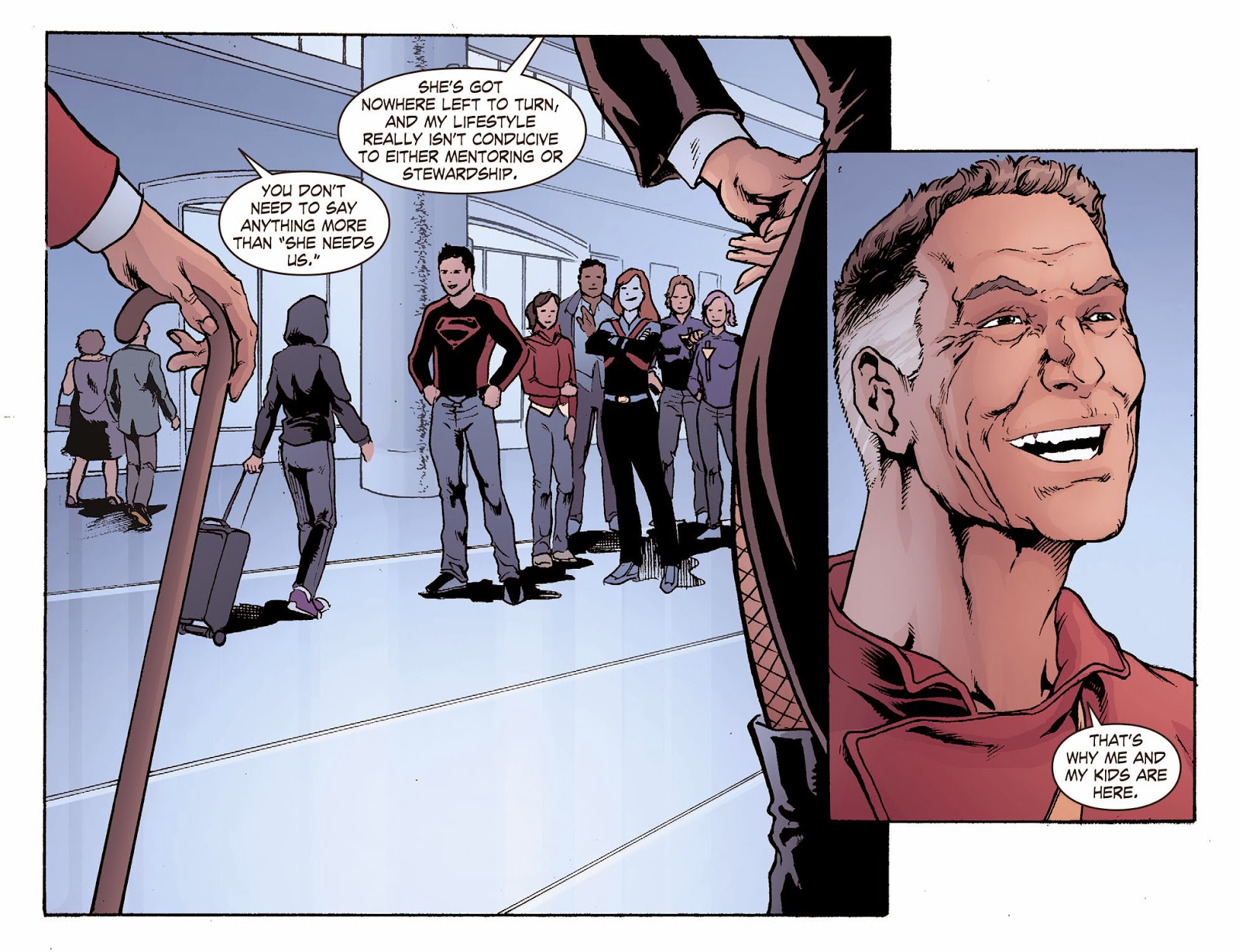 Months later, Superman and Lois arrive at Watchtower where Tess Mercer, Chloe and Oliver along with Batman, Nightwing Martian Manhunter, Supergirl, Jay Garrick and his team of teenagers. Clark tells Chloe, Tess and Bruce to find out everything from one of the Manhunters he destroyed about the Crisis, because more ships are on their way. As Batman starts to examine the crumpled Manhunter head he wonders where are they going, Clark grimly says everywhere.