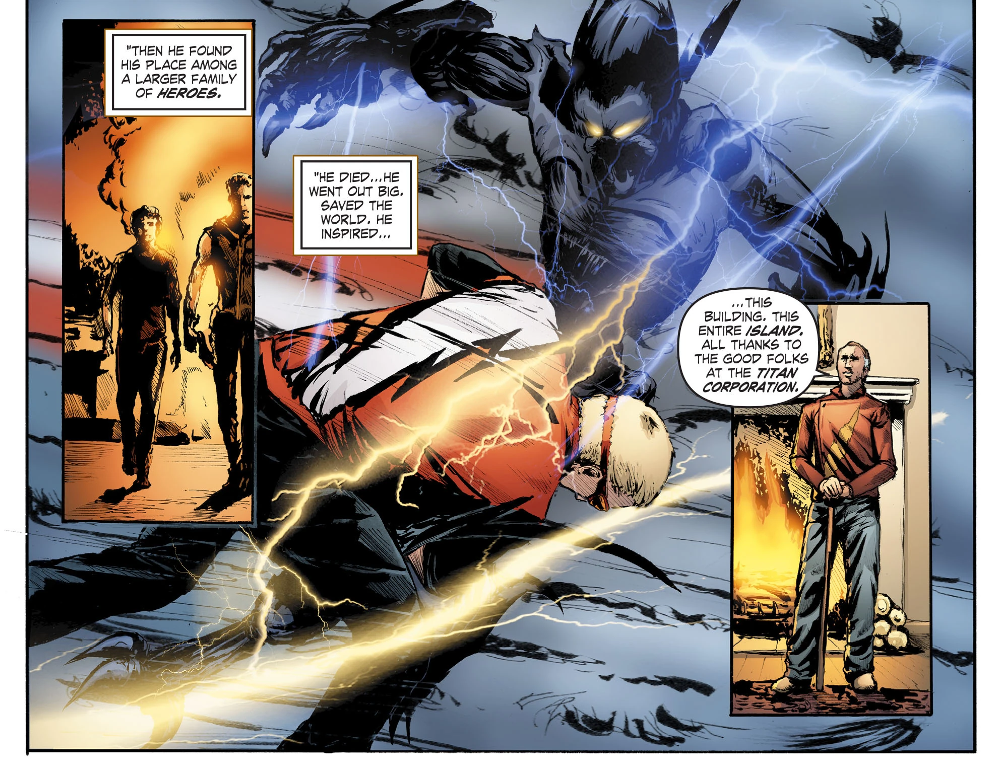 Arriving at an old residence in the outskirts of Utah, Superman and Impulse encounter an old withered appearance of Jay Garrick equipped with a cane. At first Jay isn't thrilled at meeting the punk who had stolen his identity a few years back. Superman informs Jay of Carter Hall's initial plan prior to his untimely death to reinstate the Justice Society of America with the remaining living members to help guide the new generation of Heroes. Impulse asked Jay to reveal all that he knows about the Black Flash. Jay shows signs of fear at the mention of that name and beings to reveal the reason behind his handicap as a result of the Government breaking his leg a decade ago and his own refusal to have his leg repaired as a means to incapacitate his Super speed abilities to prevent the black flash from haunting him. Although he can still feel it's presence and realize it's got it sights on Impulse and the only way to stop it is for Impulse to die.