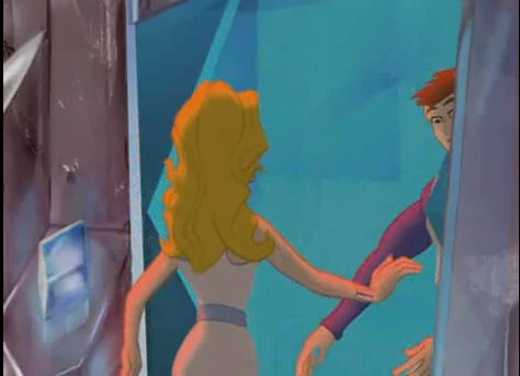 Kara push Augo into the elevator.