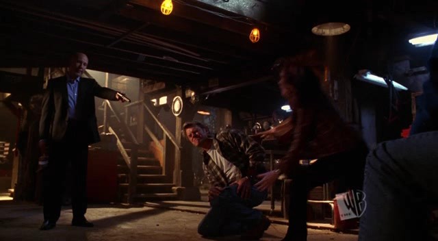 Lex's evil half shoots Jonathan in the leg.