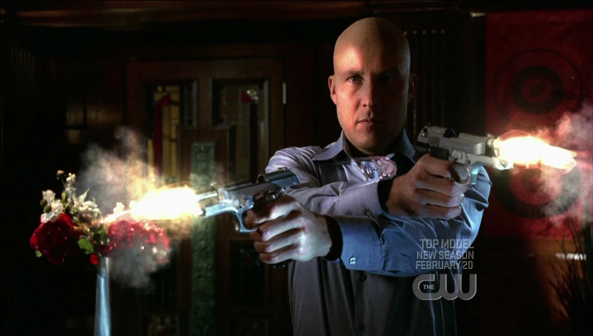 When Oliver's Queen Industries merged with Tess' LuthorCorp, Lex hired Winslow Schott to plant a bomb in the board room to kill his rival. When the plan failed, Schott to another attempt on Oliver's life but Oliver was able to overpower him and steal the bomb. Oliver's desire to kill Lex only grew after this and managed to locate Lex and used Schott's bomb to cause a nasty truck explosion with Lex inside, killing him. He then took Lex's kryptonite ring.