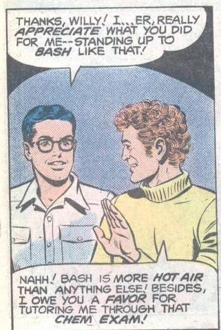 Clark Kent also went to high school with a boy named Willy Mason, who first appeared in Superboy (Volume 2) #7 (July, 1980). In the issue, Willy becomes convinced that he is adopted after discovering that his parents, Herb and Lydia Mason, are aliens in disguise. Ultimately, it is revealed that the real Herb and Lydia had merely been recently replaced by the two aliens. When the aliens (benevolent) mission is over, the real Herb and Lydia Mason are returned. Willy also appears as a young boy in Superboy (Volume 2) #11 (August 25, 1980), where he is shown having played with Clark Kent and Lana Lang when they were little children.