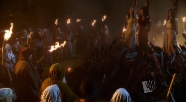 In the subsequent confrontation, Clark's invulnerability and heat vision allowed him to withstand the witches' initial attacks (although they assumed that he was a sorcerer rather than an alien), but they nevertheless managed to get the upper hand, stripping Clark of his powers and leaving to open the hidden chamber in the Kawatche Caves after realizing that he knew where one of the stones was hidden. When Clark arrived to stop them, having been released by Jason, Isobel grabbed the Crystal of Fire, only to scream out in pain as the stone protected itself from her. Clark grabbed the stone, which restored his powers. Although Isobel threatened to remove his powers again, he swiftly destroyed the spell book with his heat vision, causing Lana, Chloe and Lois to revert to normal.