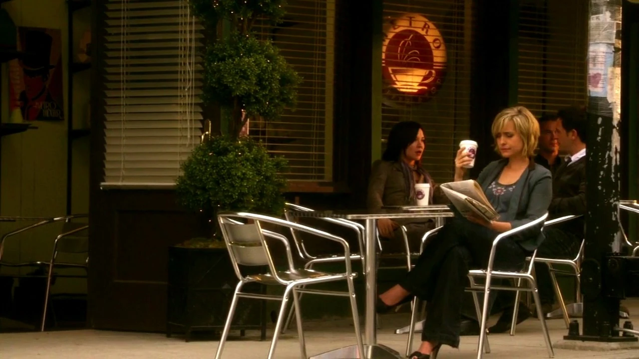 Clark met his blind date at the coffee shop when he was recording for a TV show. Later, while waiting to hear from a soldier in his army about Tess' interrogation, Zod opened an envelope while sitting at the cafe. Inside were the bloody dog tags of his soldier, suggesting that Tess had killed or injured him. Zod looked up and saw Tess Mercer on the other side of the street; a bus then passed between them, and Tess disappeared. [7]