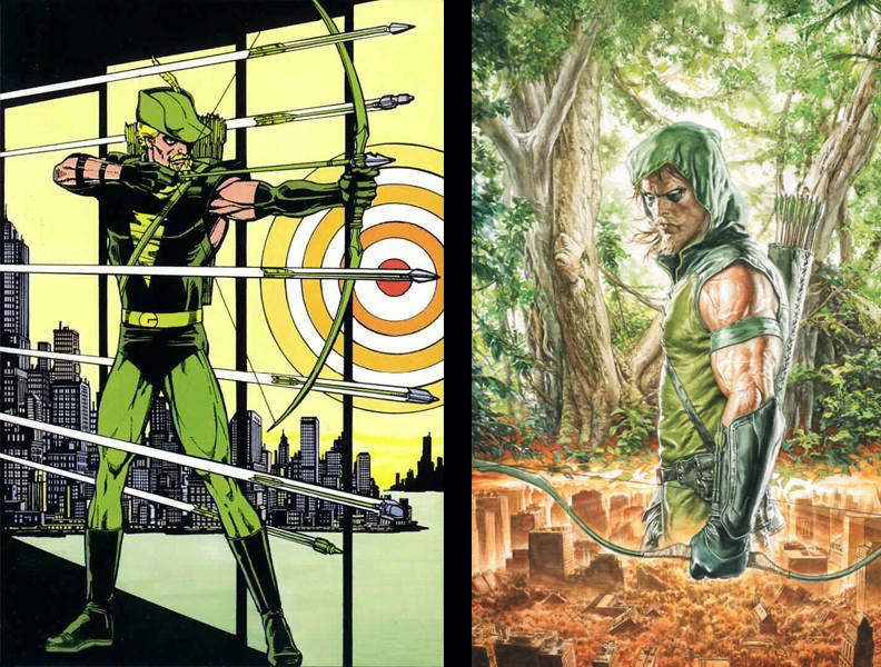 Green Arrow in his original costumes.