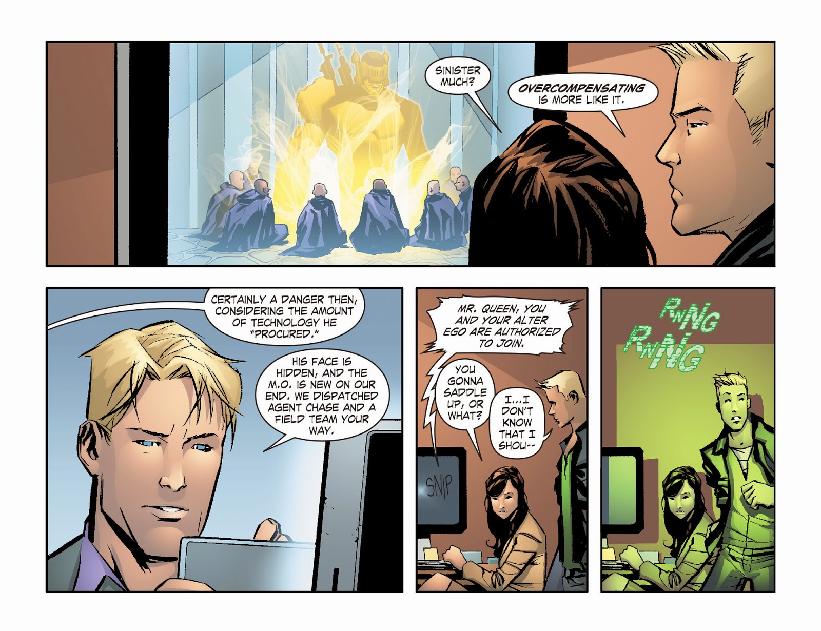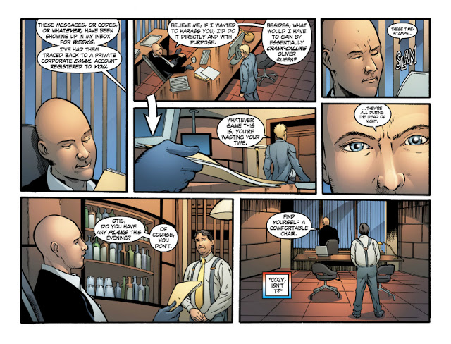 Oliver also makes scarce allusion to his former partnership with Roy Harper, but Roy's memories establish that the pair fell out badly, leading Oliver to expel him from Q-Core, and prompting Roy's own downward spiral.