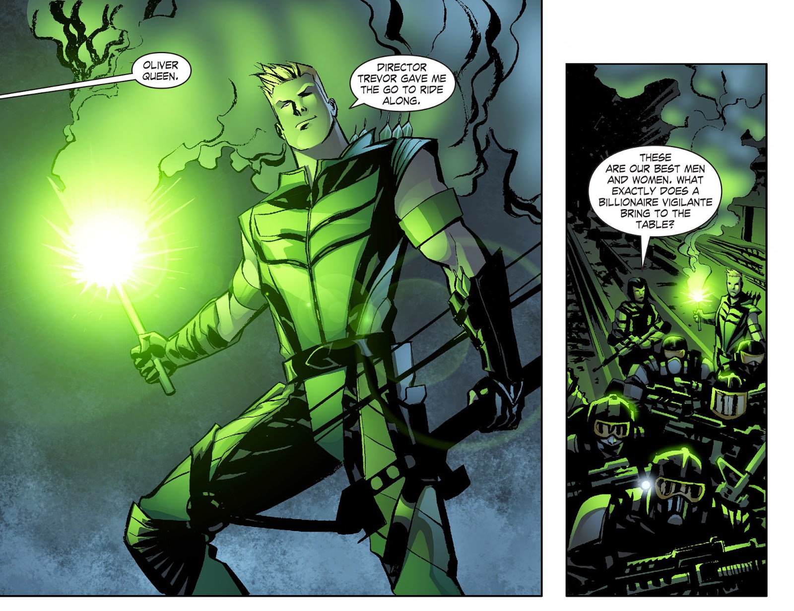Coming to the Rescue: He's Green Arrow for a reason. From his first save in "Toxic" or the numerous rescues..."Arrow", "Identity", "Injustice", etc., his methods may be unorthodox from time to time, but he is loyal.