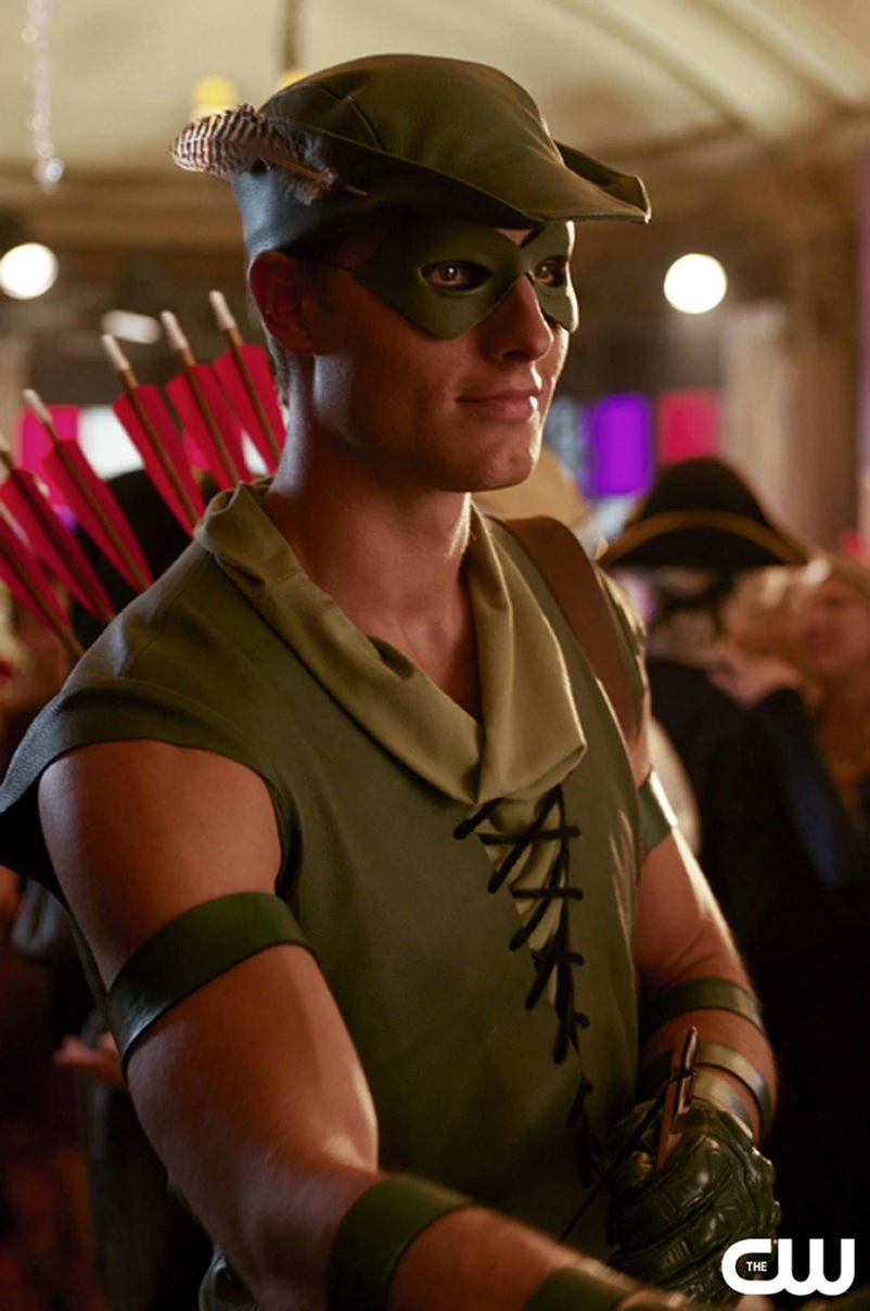 Oliver Queen dressed as Robin Hood.