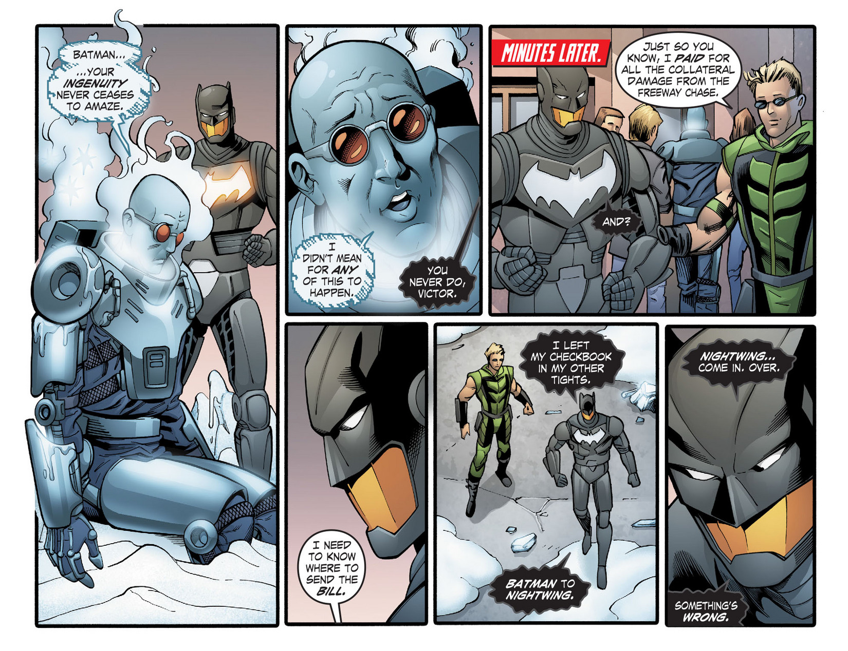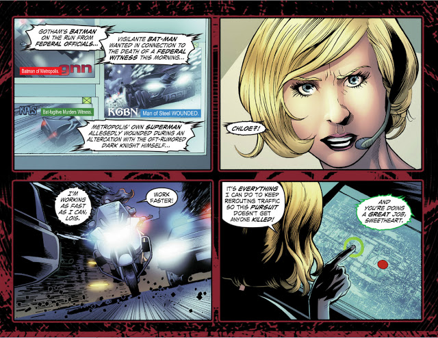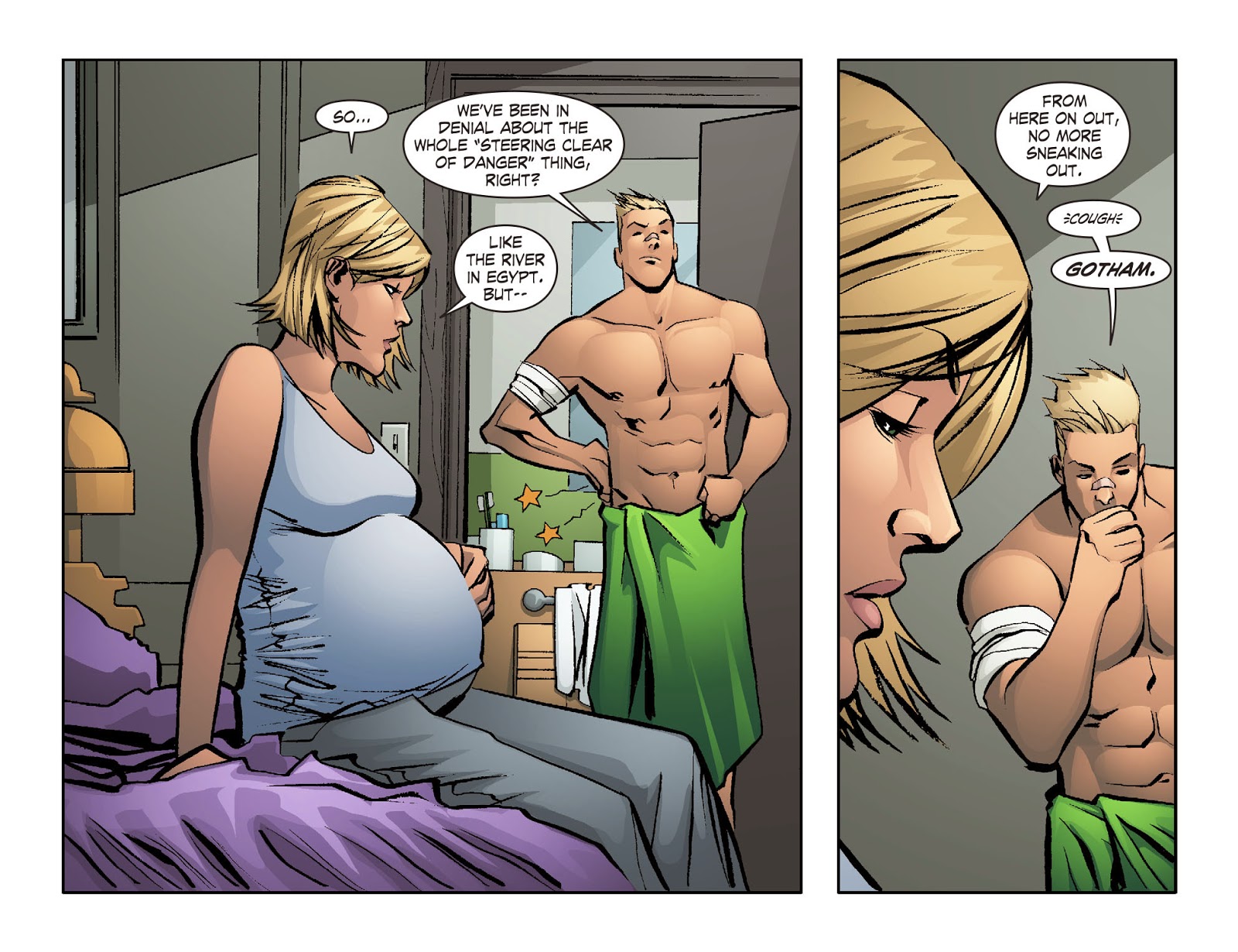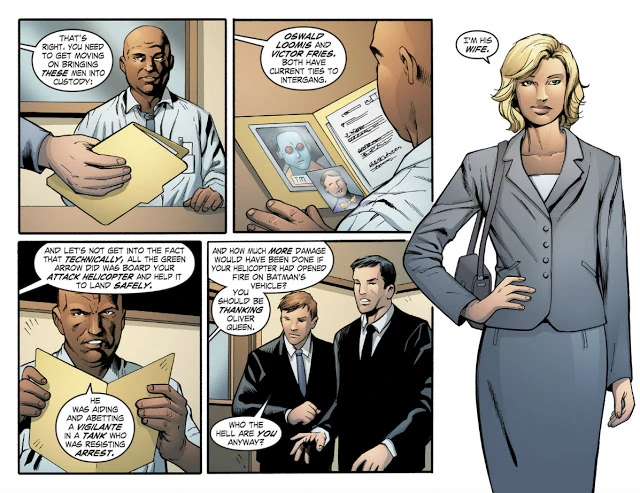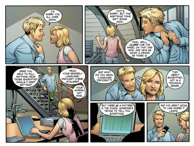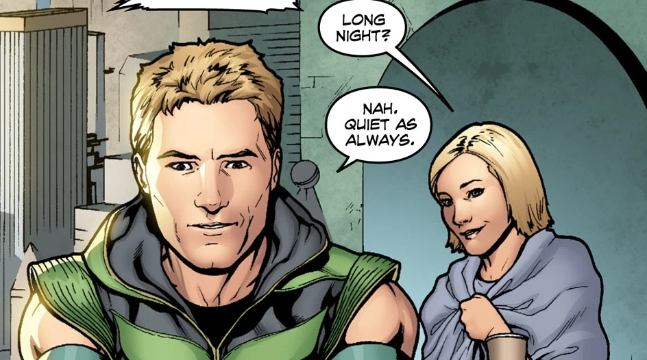Six months later, Oliver currently resides within the walls of Watchtower, back in Metropolis with his wife - Chloe Sullivan-Queen. Oliver, in his Green Arrow getup, finds himself without work in Metropolis, as Superman has kept the streets clean for months. When Chloe asks if his night was long, Oliver admits it was "quiet, as always." The two share a coffee together as they wait for any signs of Superman before resuming their previous plans.