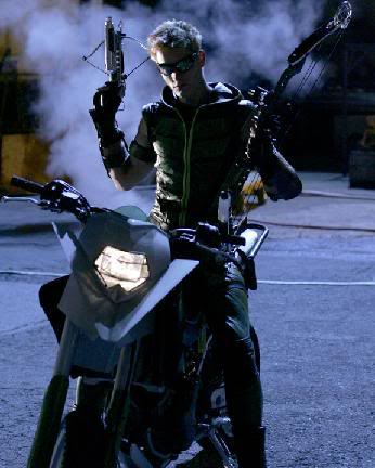 Motorcycle: As Green Arrow, Oliver rides a customized Husqvarna SM610 with customized tires, forks and headlights ("Arrow", "Detective").