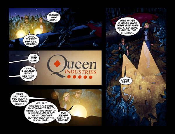 Oliver and Chloe find that the spaceship actually belong to Queen Industries.