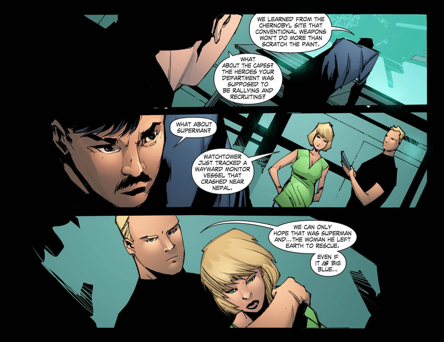 The Justice League decides on the Monitor's fate.