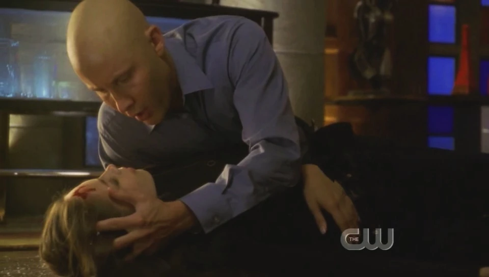 Lex goes to Oliver's tower to confront him and they argue. Oliver accuses Lex of running from his mistakes and Lex traitorously punches him, but then get harshly beaten up by Oliver. Suddenly, the window shatters and Oliver pushes Lex out of the way. He stands up to see one of his arrows flying towards him. It hits him in the shoulder and pins him to the wall. Just as one of his electrical arrows flies towards him, Clark speeds in front of it. The pulse travels, Duncan's brain waves short out, and he goes limp. When Clark goes back to the clinic, Duncan has died and Lois has decided not to write her story.