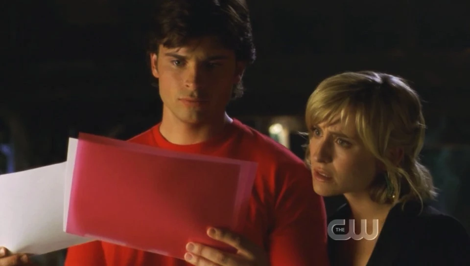 - This episode marks the 42nd appearance of Clark's red jacket & blue shirt outfit, which he wears frequently throughout the series.