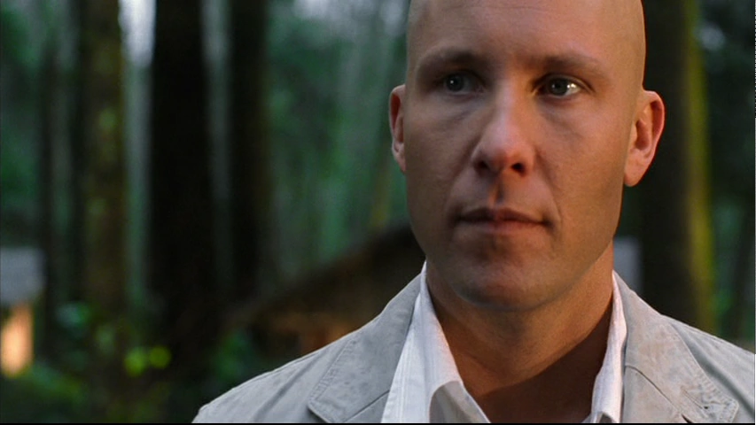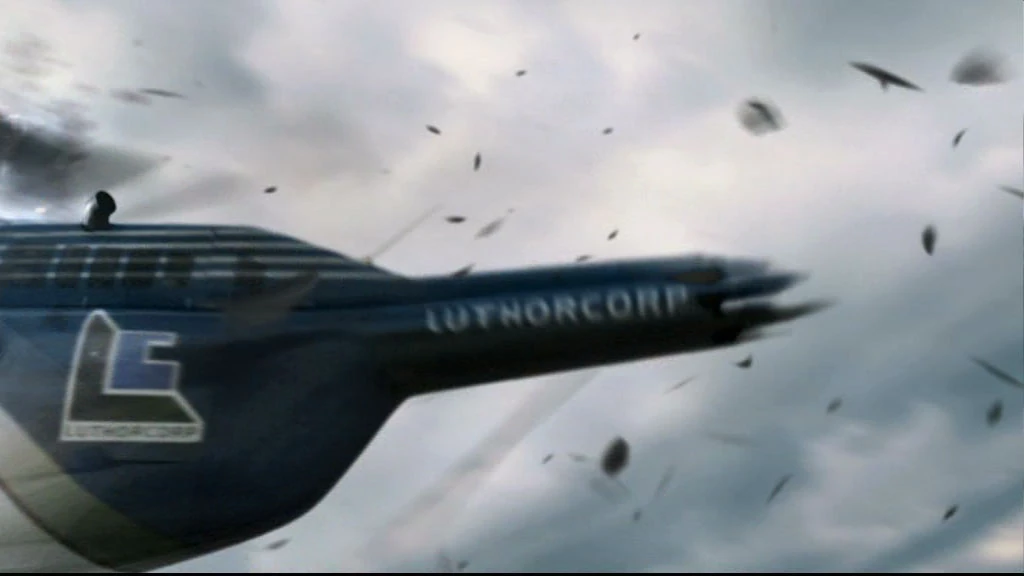| Background: Lex looking through a hole in a cabin wall after Clark broke into his jet in the air to get the Crystal of Fire. | 4x01 Crusade | S. 5 - S. 6 | |