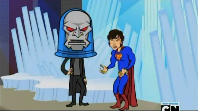 - Darkseid: I was told my head wasn't big enough to be seen in the background. (Darkseid's head comes off and lands on Clark)