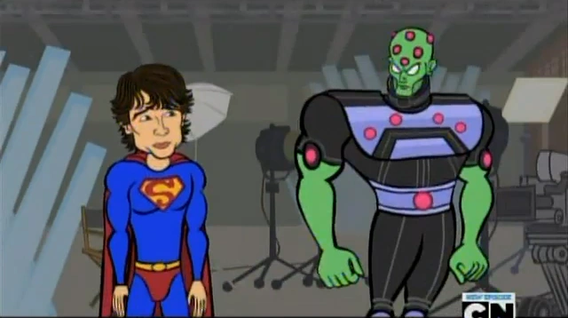 Clark, Lois, and Chloe are at the Fortress of Solitude where Clark decides to embrace his destiny as Superman and goes inside what looks like a crystalline outhouse to change into the suit and comes out, complaining that the suit is itchy. Immediately, the director says that the show is over, much to Clark's surprise and then blames Brainiac for what just happened.