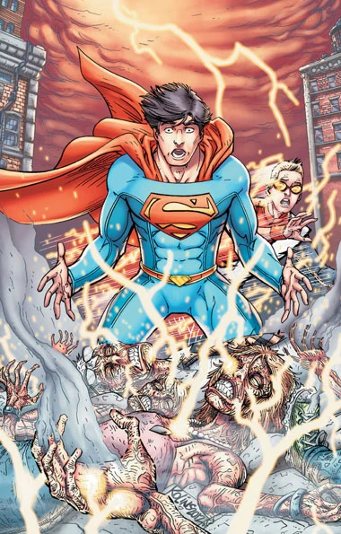 The man notices crackling arcs of yellow, red, and black electricity near the same broken glass cage that once held Bart and investigates the strange phenomenon. As Fritz announces on comms for the team to check their radiation strips, the electricity arcs like lightning and strikes him. Lois witnesses Fritz being trapped by the electricity and runs across the ruins toward him. The electricity soon builds into a charged vortex and throws Fritz across the ruins. Lois yells for an ambulance as she sprints to help the man. She's horrified to find the man's body sucked of life ... and age.