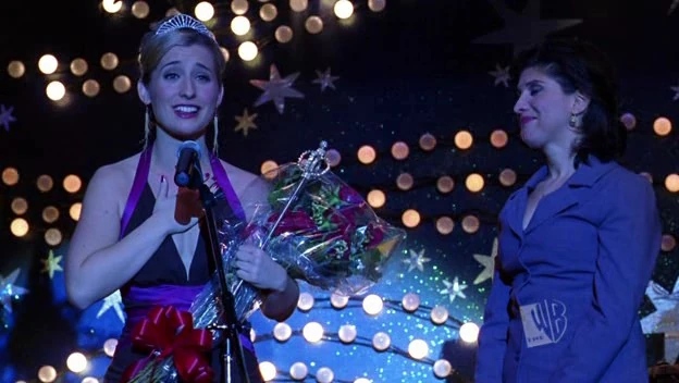 Clark and "Lois" arrive at the prom, as Chloe also arrives. Chloe approaches Clark and says she's surprised but glad to see him. He says that he decided to come because he wanted to see her win. The music stops for the announcement of Prom Queen and Chloe wins! "Lois" hugs her before she goes to accept the tiara, and Dawn's spirit possesses Chloe. Going unnoticed by most viewers, the Prom King title was never mentioned. Now normal, Lois asks Clark why she's there and Clark realizes that Chloe has been possessed. "Chloe" accepts her crown and begins a strange speech in which she enthusiastically talks about how being Prom Queen is her lifelong dream and how Dawn Stiles really deserves the crown. The crowd begins to boo and chant Chloe's name. "Chloe" gets angry and storms off. She is again seen knocking Jonathan down the stairs as she makes her way to the boiler room to set the school on fire.