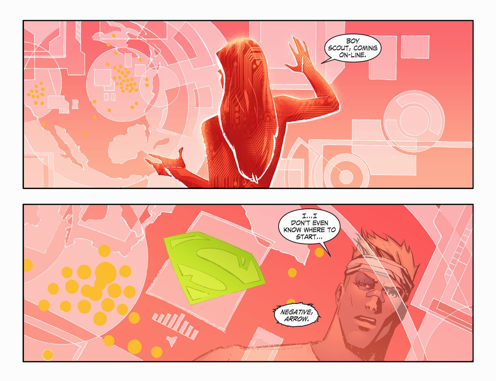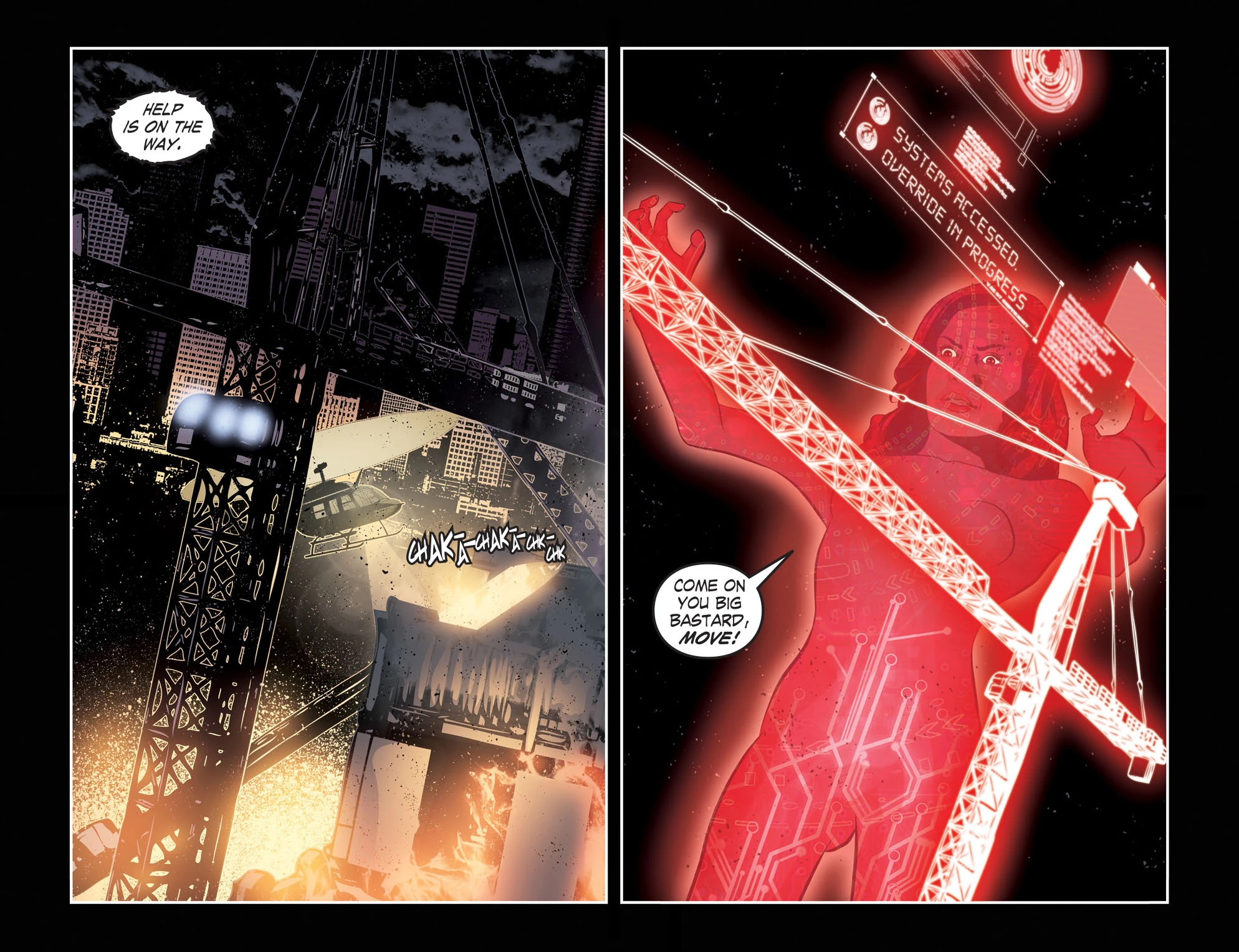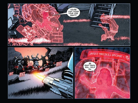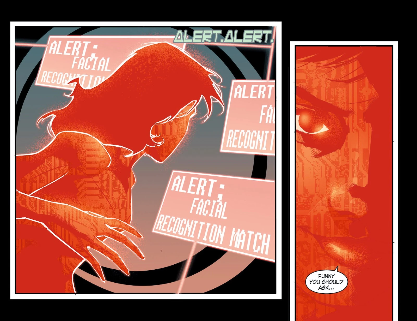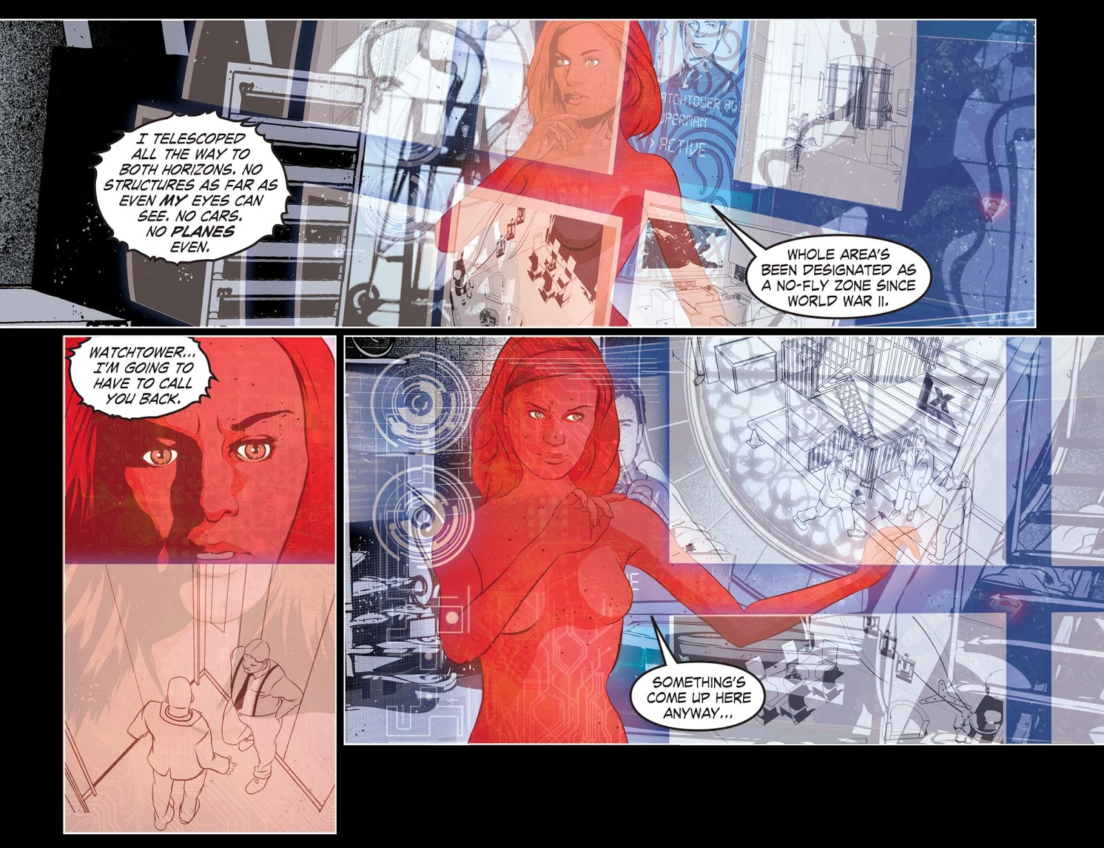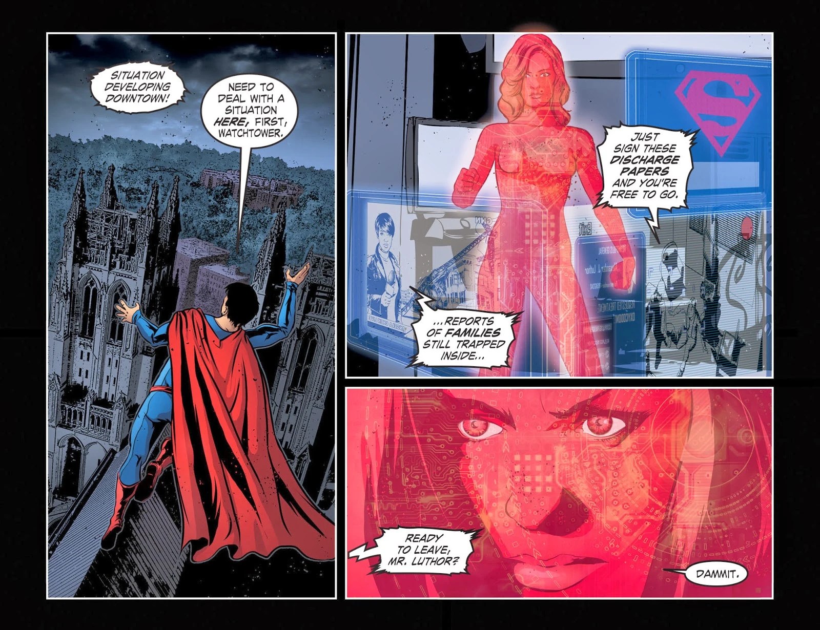 - ↑ She tells Lex in a mirror (while wearing ocular implants) that, "I did everything you ever asked. You've seen it with your own eyes, and apparently, with mine. But not anymore. I hope you watch with rapt attention as your bank accounts close, and you lose all contact with the outside world. I loved you, you son of a bitch."