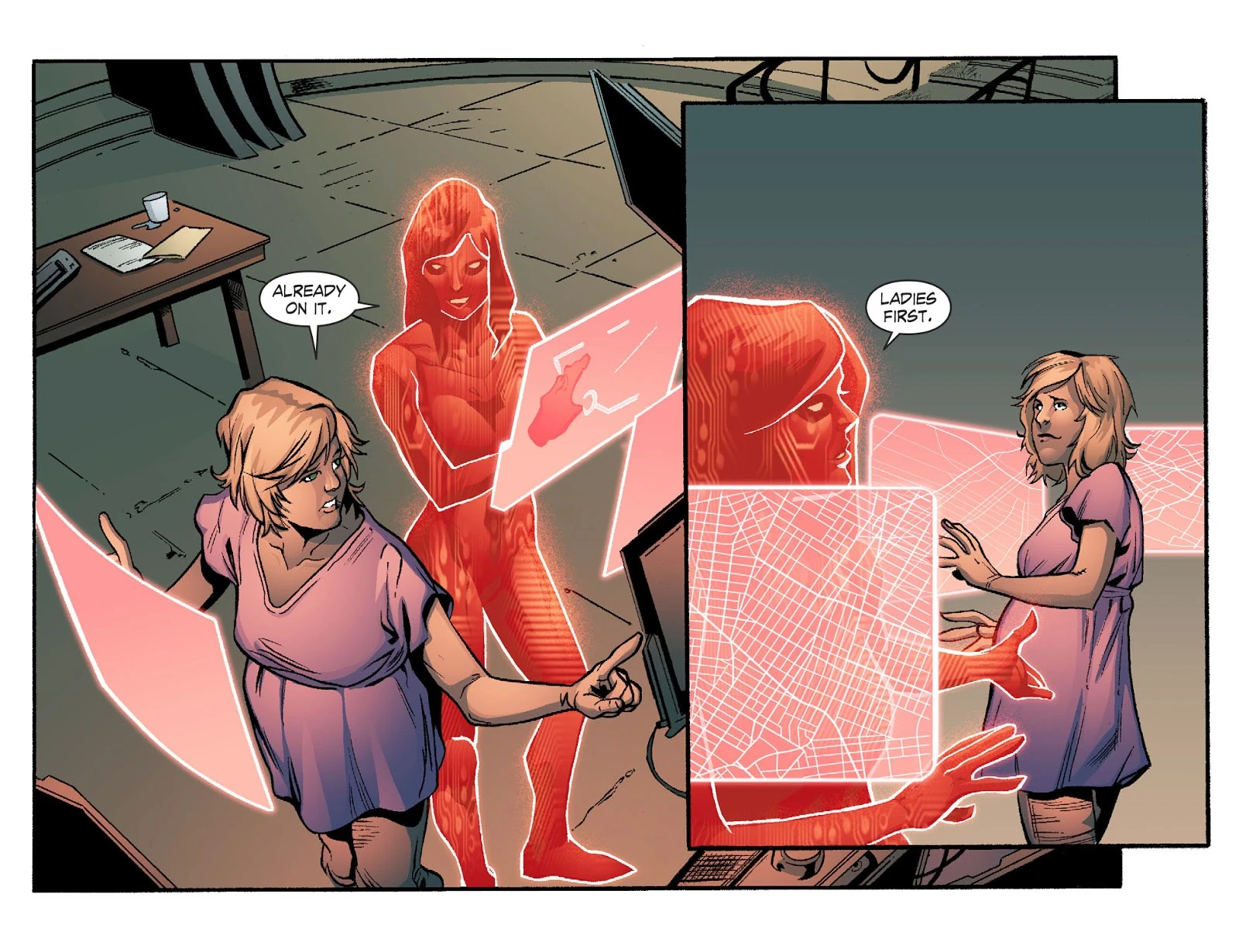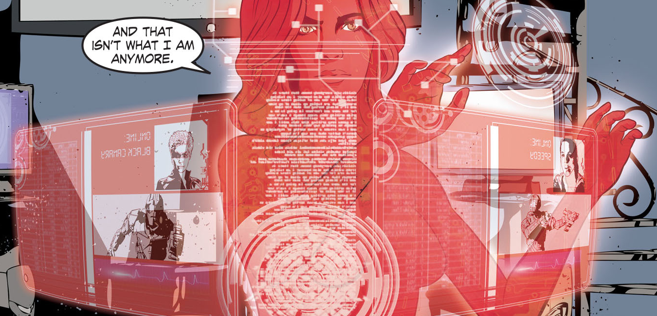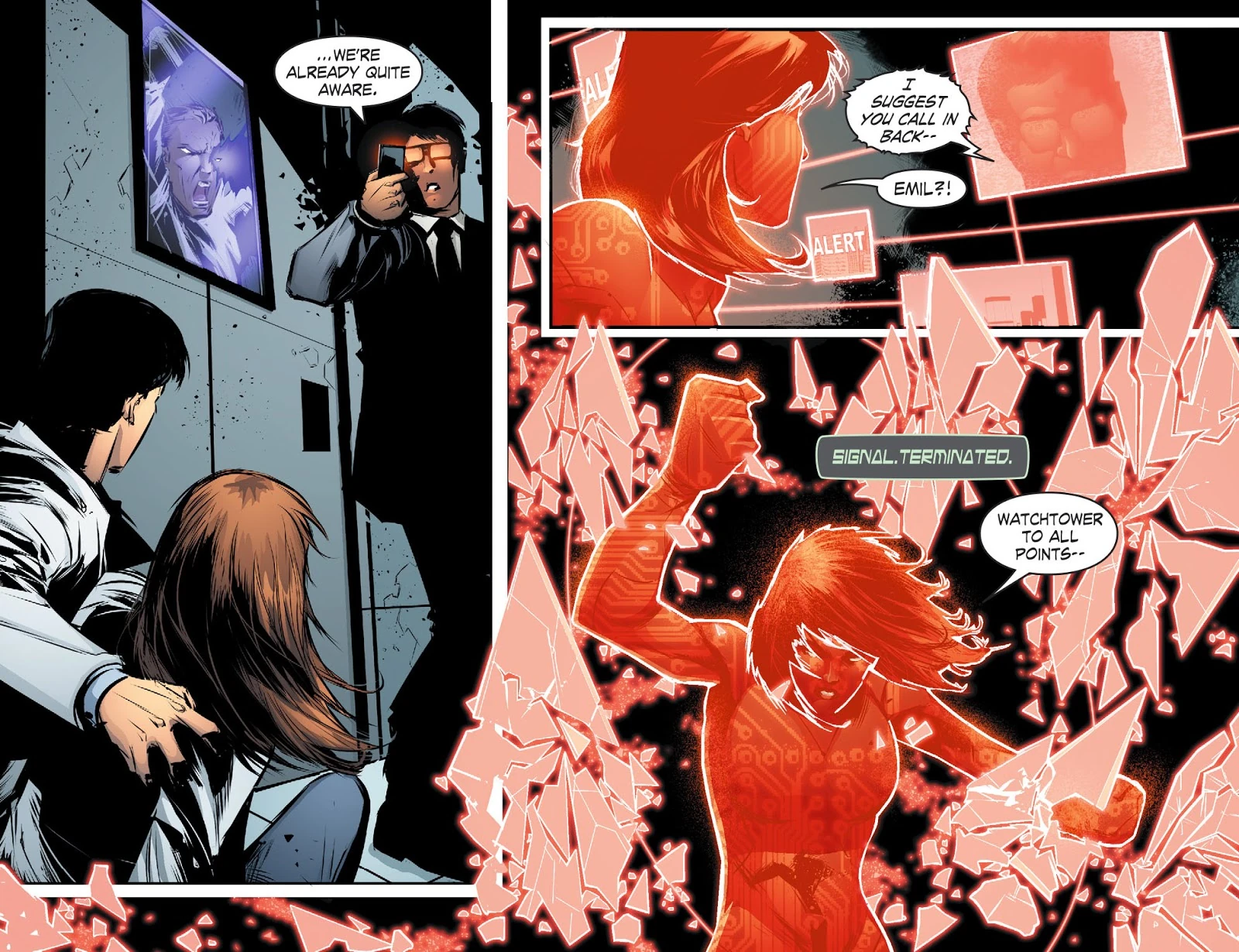 - Technology Interface: She had been able to control the doors at LexCorp, remotely locking them whenever she wanted and manipulate some information through the computer systems at Metropolis' hospital, meaning that her control over technological systems does not end within Watchtower's walls. She has also being able to watch through cameras placed in almost every building in the city.