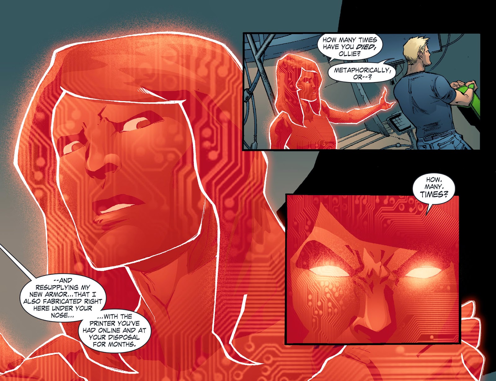 - ↑ Tess and Green Arrow fought briefly in Bloodline. Also, Oliver and Tess sparred in Committed.