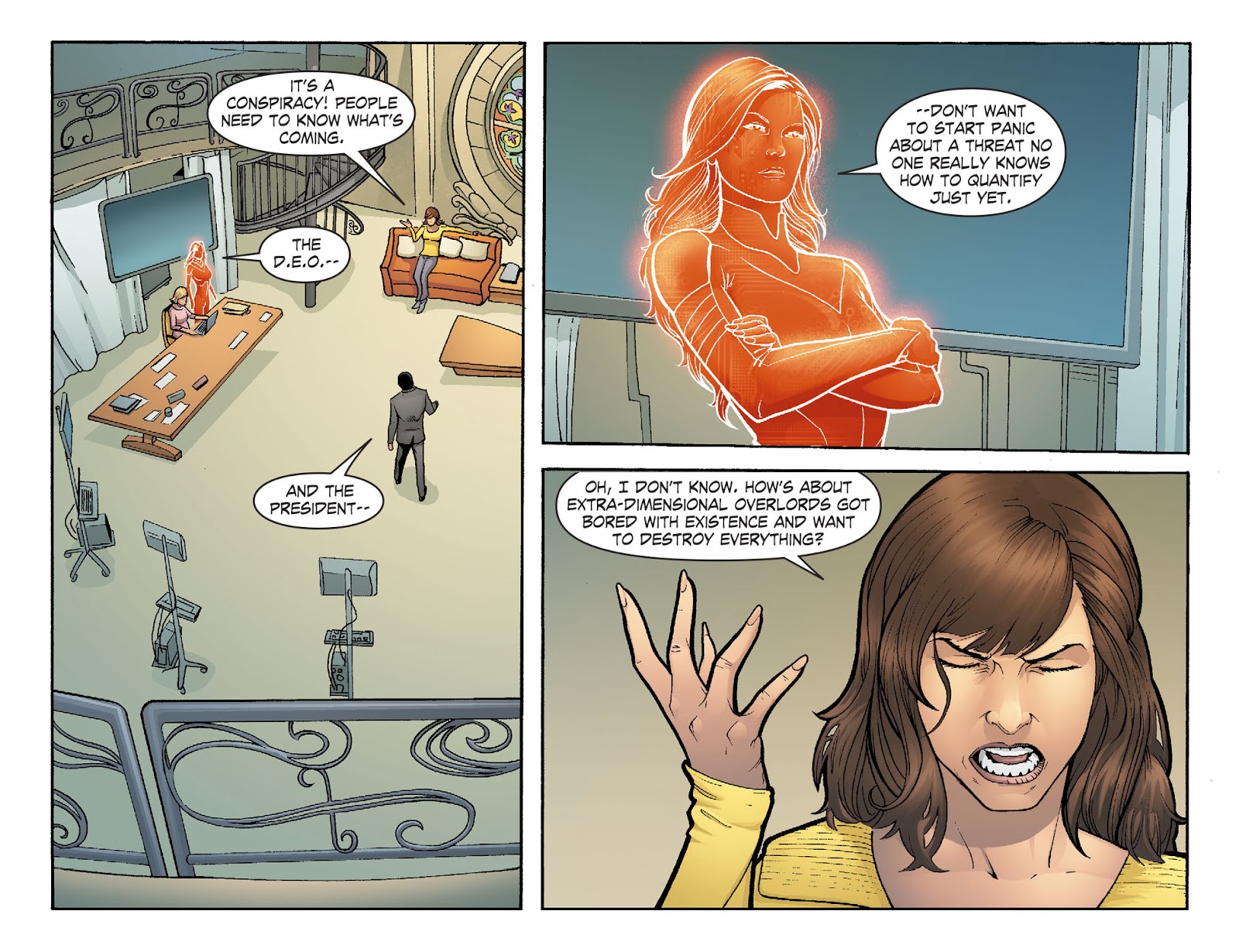 - ↑ She found that Lois had knocked out a security guard and even witnessed Lois using super speed. In actuality, Lois had been possessed by Faora at the time.