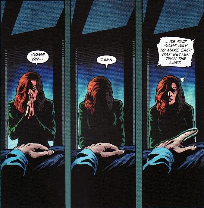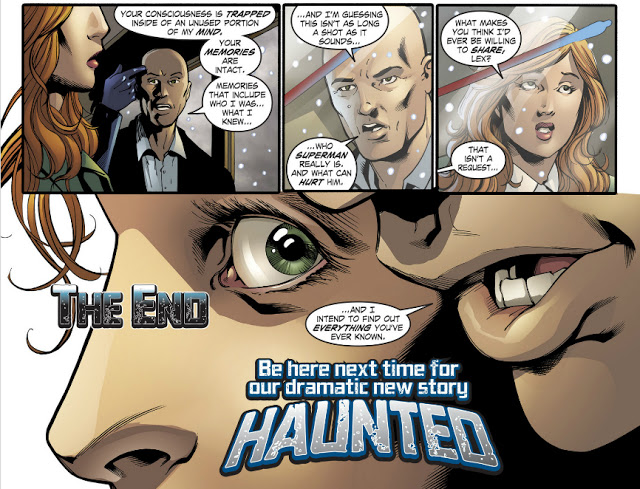 Having moved on with her life and changed her personality, due to her friendship with Clark and her involvement with the Justice League, she still seems she hasn't forgive Lex for what he had done to her for all these years: manipulated and lied to her, used her as his own "ears and eyes" without her will, kept her in the dark about her origin, killed her and finally threatened her if she would not tell him the truth about Superman. Even when she was freed from Lex's body she still seemed to hold on to her past seeking vengeance from her brother. While she was on standby mode she dreamed about many moments in her life and between them they were many scenes of violence including Lex, indicating that she wants to get revenge. In many cases she has being seen to uses her powers as A.I. to somehow hurt or even kill him. This obsession to get revenge on Lex seems to stops her from settling into her new life and moving forward.