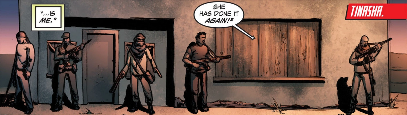 After arriving in Africa, Lana Lang (then possessing super-powers) began fighting the local warlords around the area of Tinasha.[1]